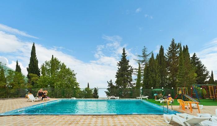 В свободном пользовании посетителей - уютная детская площадка и открытый бассейн с пресной подогреваемой водой. В 150 метрах, воспользовавшись подземным переходом, Вы попадаете на широкий песчано-галечный пляж. Все гости могут воспользоваться шезлонгами и зонтами совершенно бесплатно.